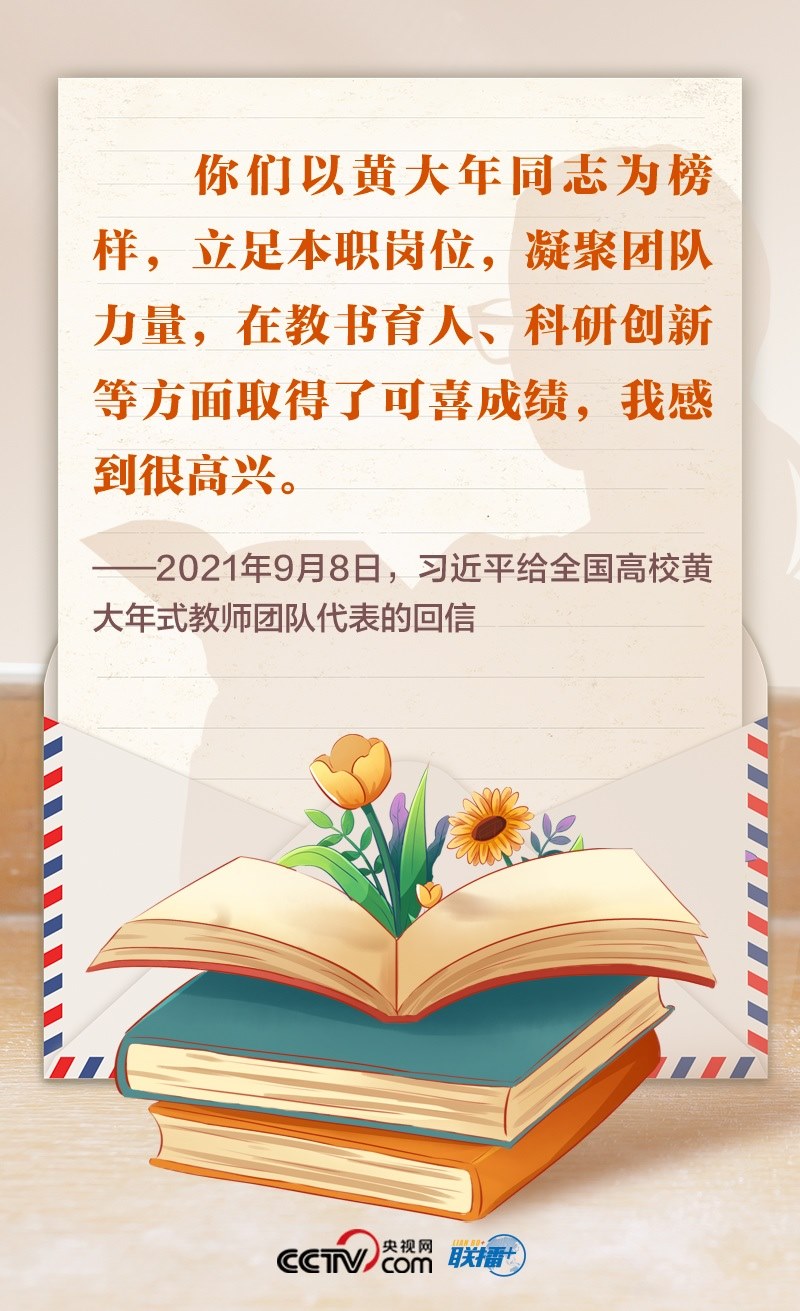 2021年,首批黃大年式教師團(tuán)隊(duì)的代表給總書記寫信,匯報(bào)教學(xué)、科研等工作情況,表達(dá)了堅(jiān)守教育報(bào)國(guó)理想、為民族復(fù)興貢獻(xiàn)力量的決心。總書記回信肯定了大家的工作成效,勉勵(lì)大家繼續(xù)學(xué)習(xí)弘揚(yáng)黃大年同志等優(yōu)秀教師的高尚精神,立德修身,潛心治學(xué),開拓創(chuàng)新,真正把為學(xué)、為事、為人統(tǒng)一起來(lái),當(dāng)好學(xué)生成長(zhǎng)的引路人。