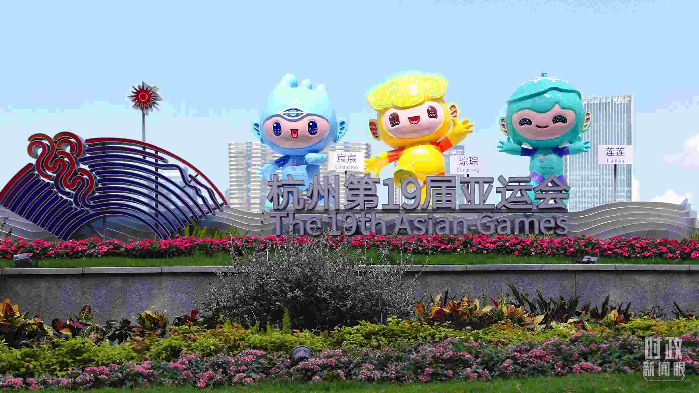 △杭州街頭的亞運會元素。(總臺央視記者蔣碩拍攝)