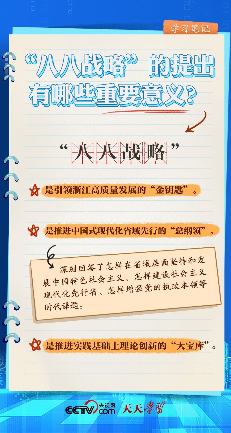 什么是“八八戰(zhàn)略”?“八八戰(zhàn)略”的時代價值有哪些?央視網(wǎng)《天天學(xué)習(xí)·學(xué)習(xí)筆記》帶您一起了解。
