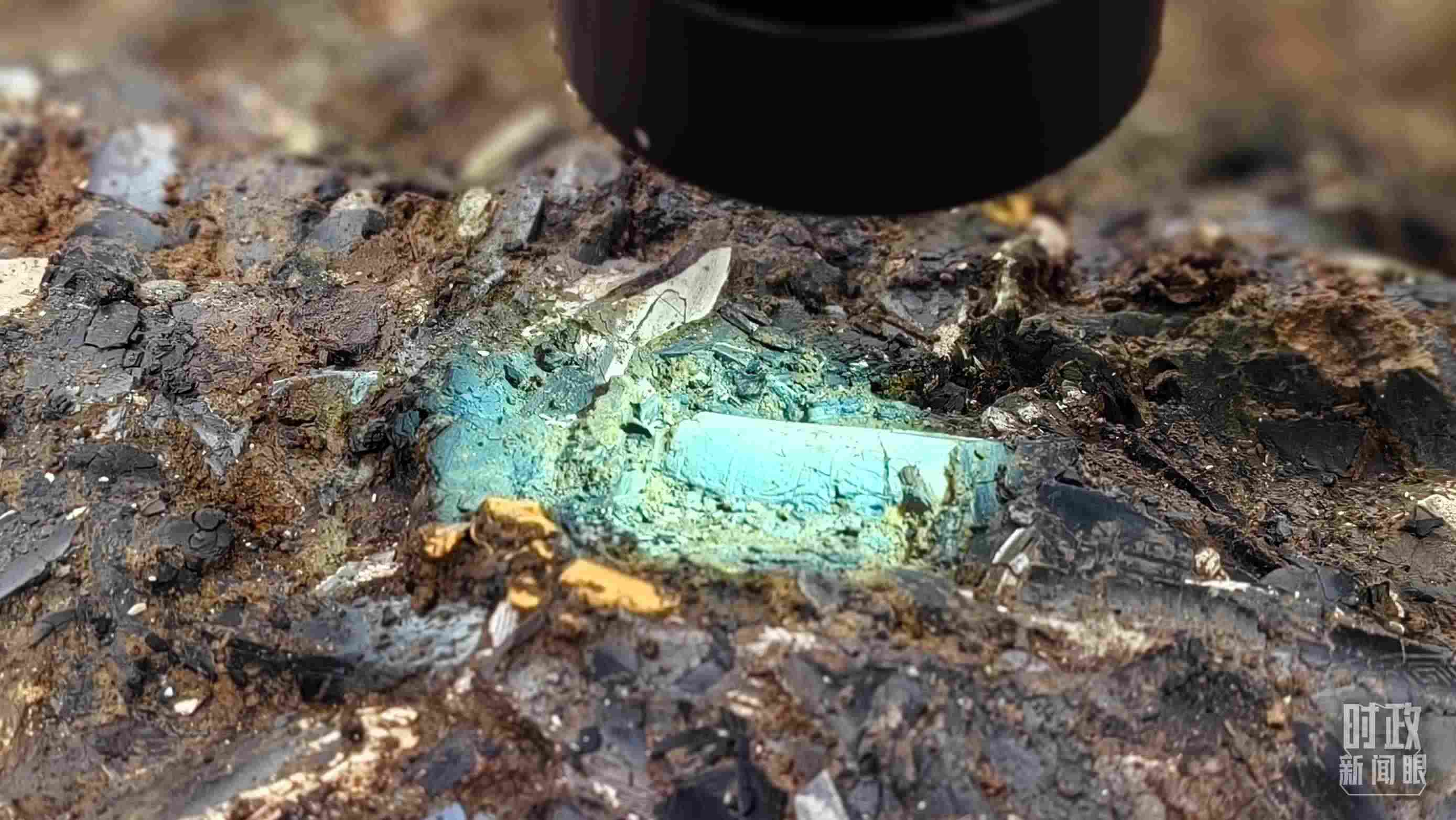 △顯微鏡下,三星堆文物的紋路清晰可見(jiàn)。(總臺(tái)央視記者王萌萌拍攝)