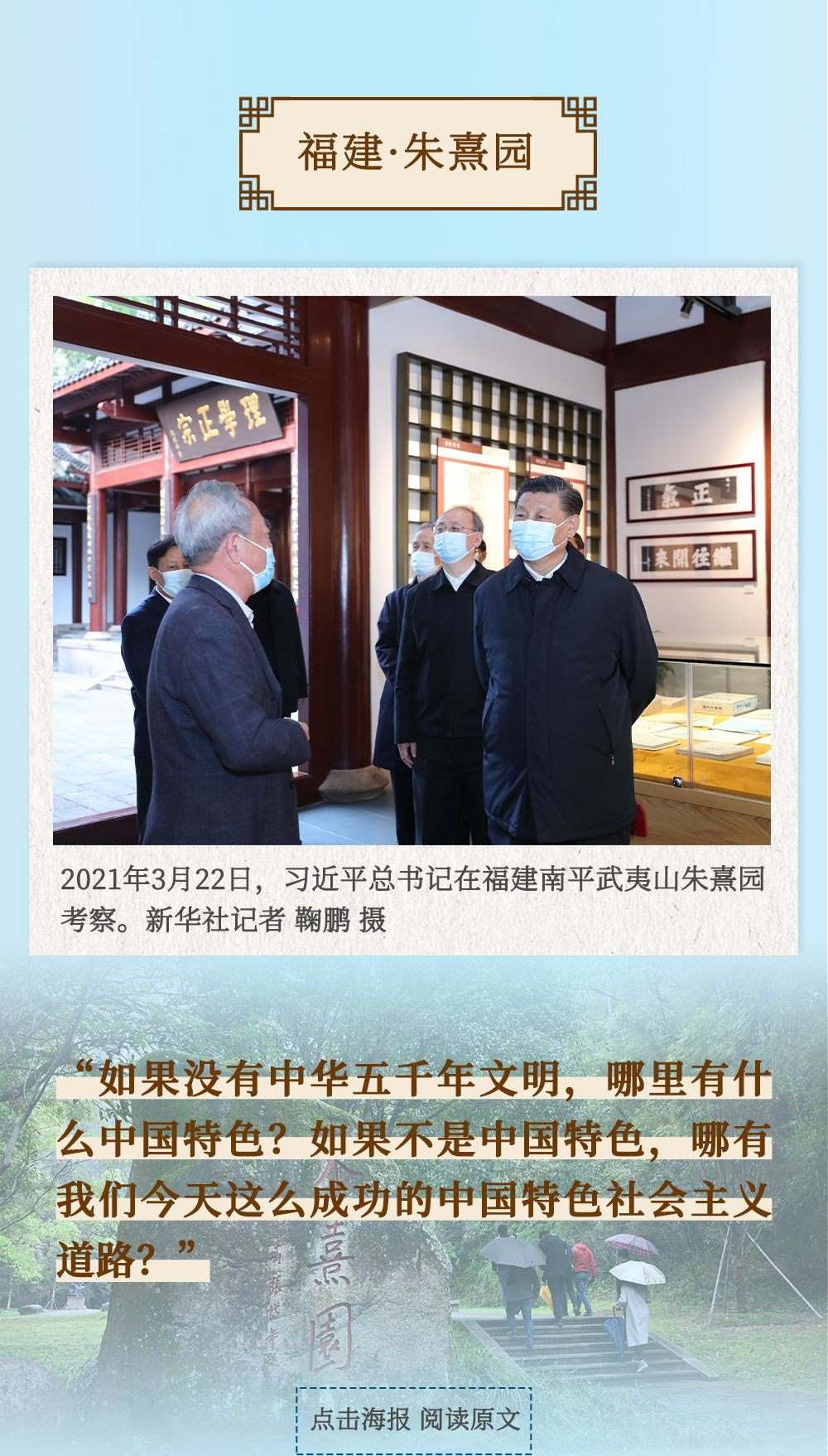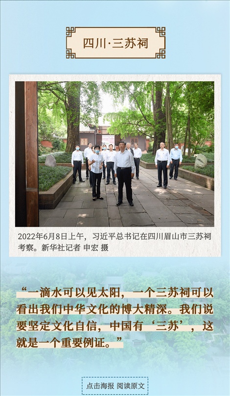 從四川三蘇祠到河南殷墟遺址,從山東孔府、孔子研究院到湖南大學(xué)岳麓書院,從甘肅嘉峪關(guān)關(guān)城到福建朱熹園,從山西云岡石窟到廣東潮州古城……考察文化遺產(chǎn)、探尋文明根脈,帶著深厚的歷史感,習(xí)近平總書記的“文化足跡”遍及全國(guó)。