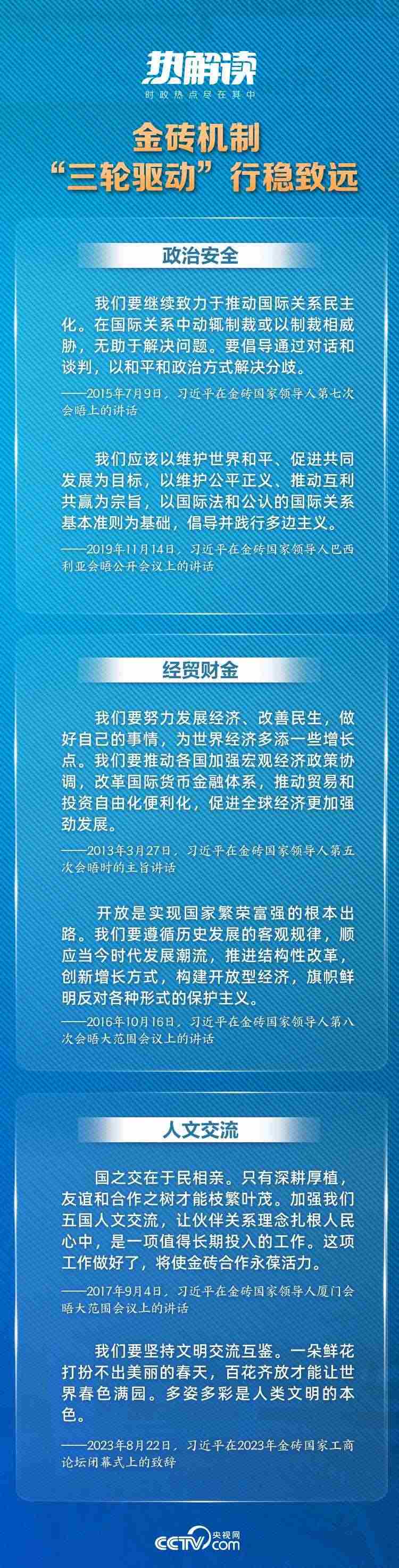 從字母組合的符號象征到一塊實打?qū)嵉摹敖鸫u”,回顧金磚合作機制走過的歷程,習(xí)近平主席倡導(dǎo)的“三輪驅(qū)動”合作架構(gòu)為金磚國家合作發(fā)展提供了可行有效的抓手。
