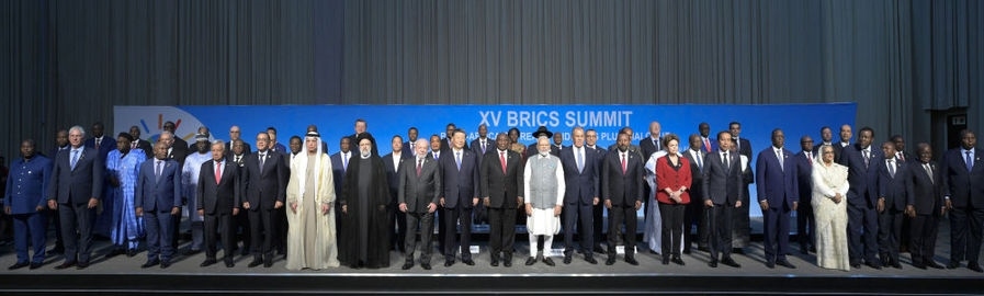 會議由南非總統(tǒng)拉馬福薩主持,巴西總統(tǒng)盧拉、印度總理莫迪、俄羅斯總統(tǒng)普京(線上)和60多位非洲國家及其他新興市場和發(fā)展中國家領(lǐng)導(dǎo)人或代表,以及聯(lián)合國秘書長古特雷斯、新開發(fā)銀行行長羅塞夫等國際和地區(qū)組織負(fù)責(zé)人出席。這是與會領(lǐng)導(dǎo)人集體合影。新華社記者 李學(xué)仁 攝