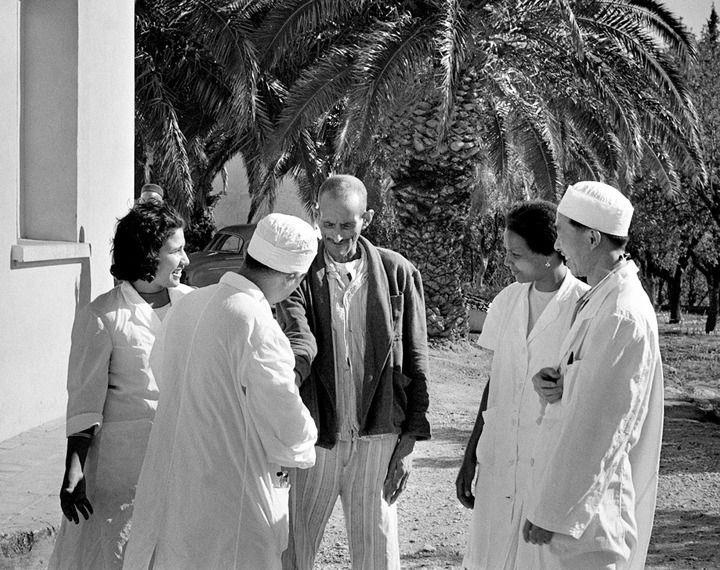 △1966年12月,一名阿爾及利亞老人向中國援非醫(yī)療隊醫(yī)生表達(dá)自己病況好轉(zhuǎn)的愉快心情。