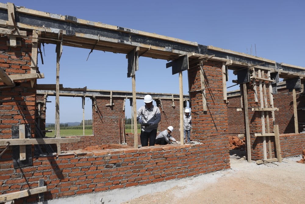 9月7日,在黑龍江省尚志市老街基鄉(xiāng)龍王廟村,工人在重建房屋。