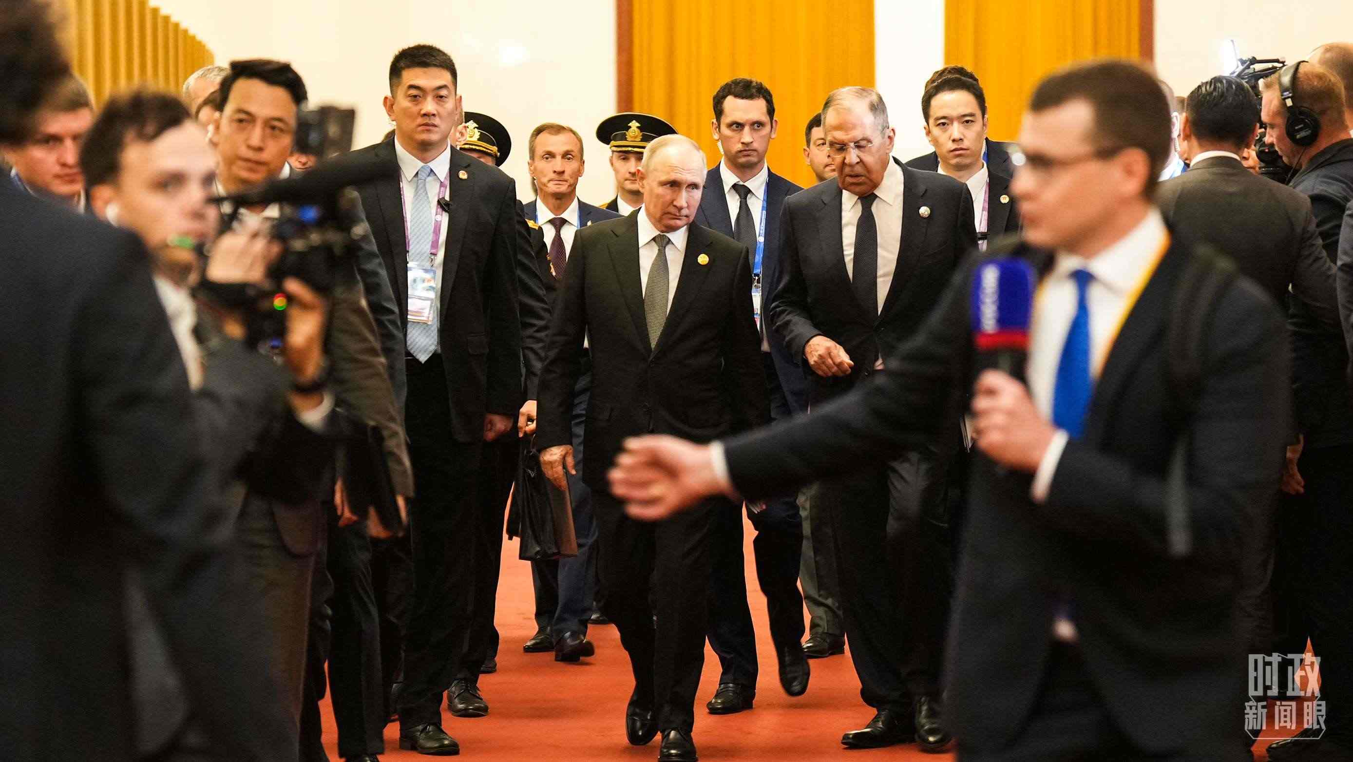 △人民大會(huì)堂,俄羅斯總統(tǒng)普京走向會(huì)見廳。(總臺(tái)國(guó)廣記者李晉拍攝)