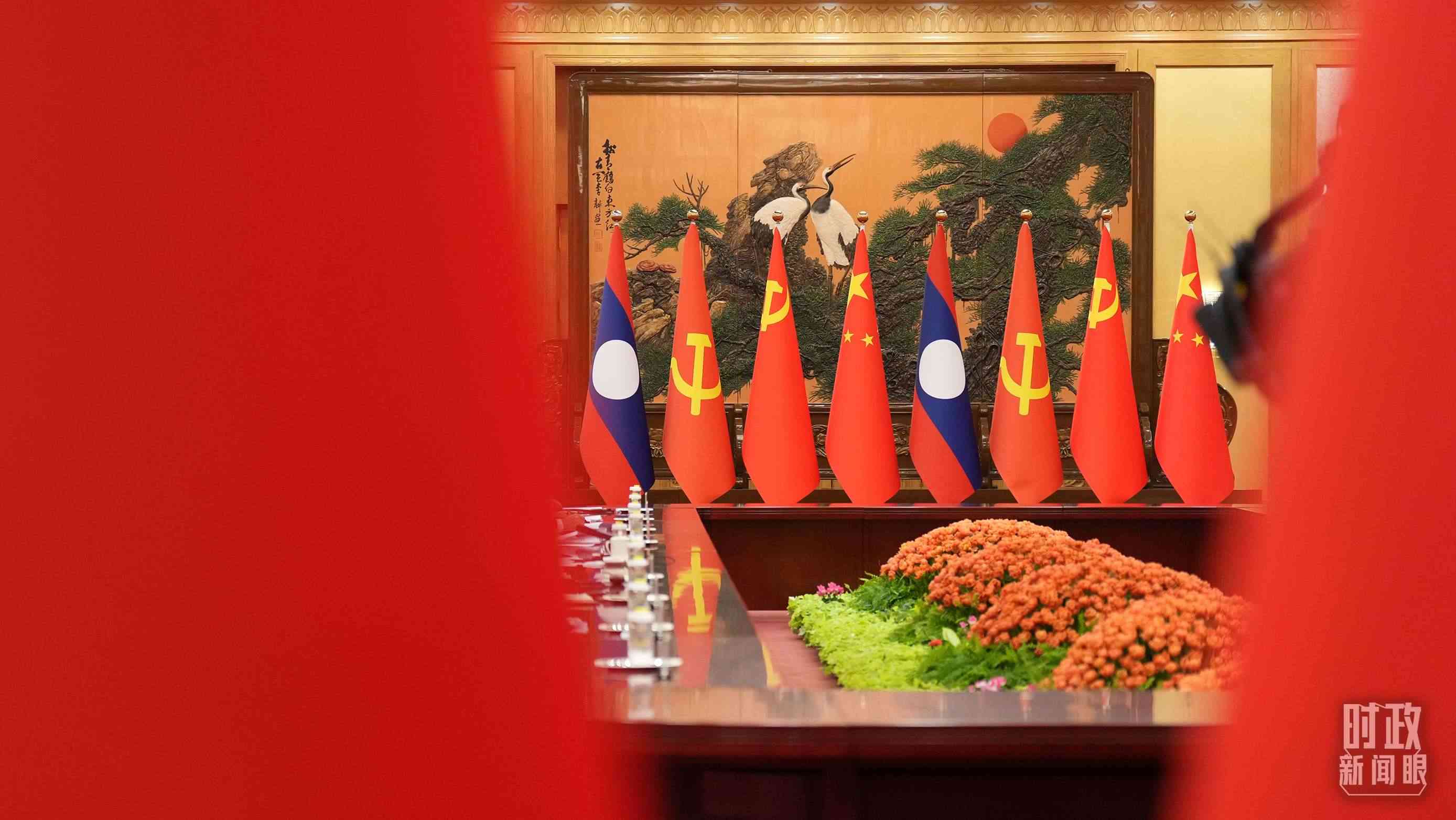 △中老領(lǐng)導(dǎo)人會(huì)見現(xiàn)場(chǎng)。(總臺(tái)國(guó)廣記者李晉拍攝)