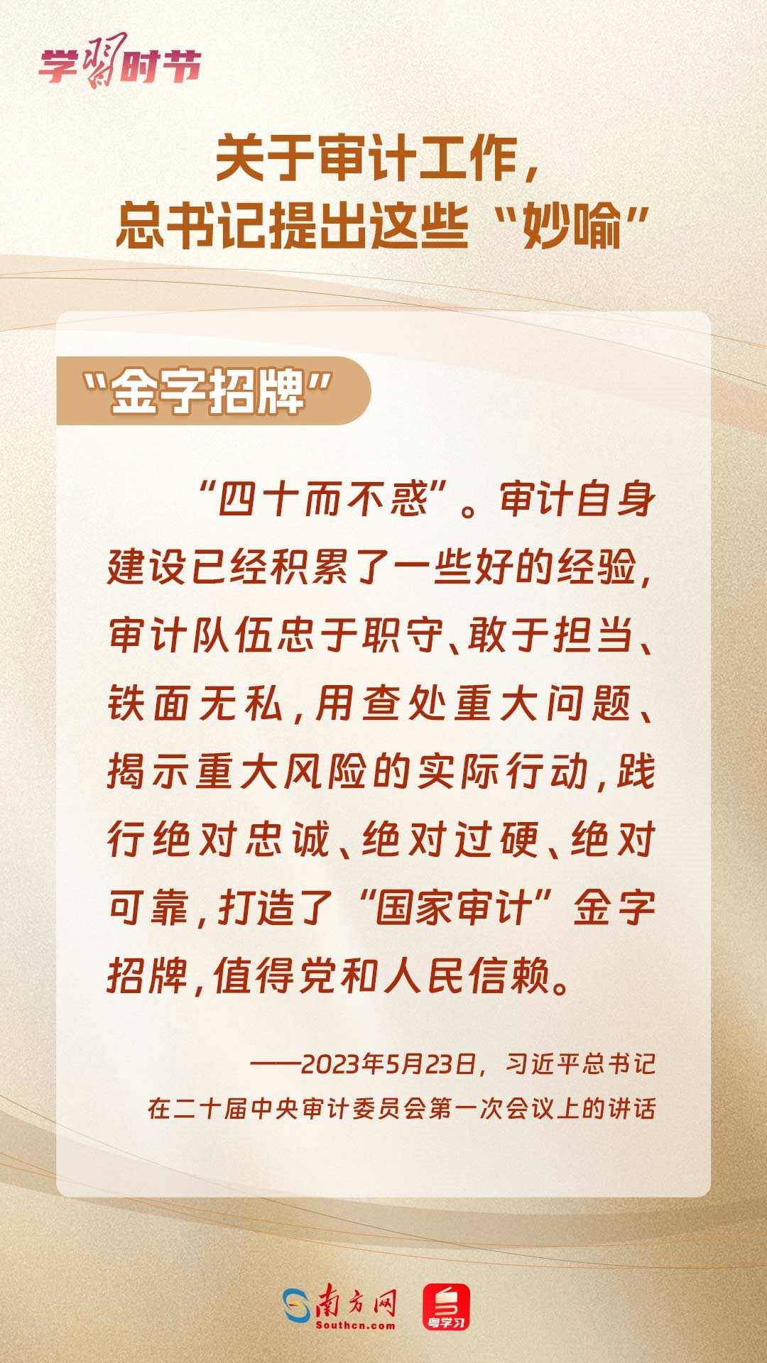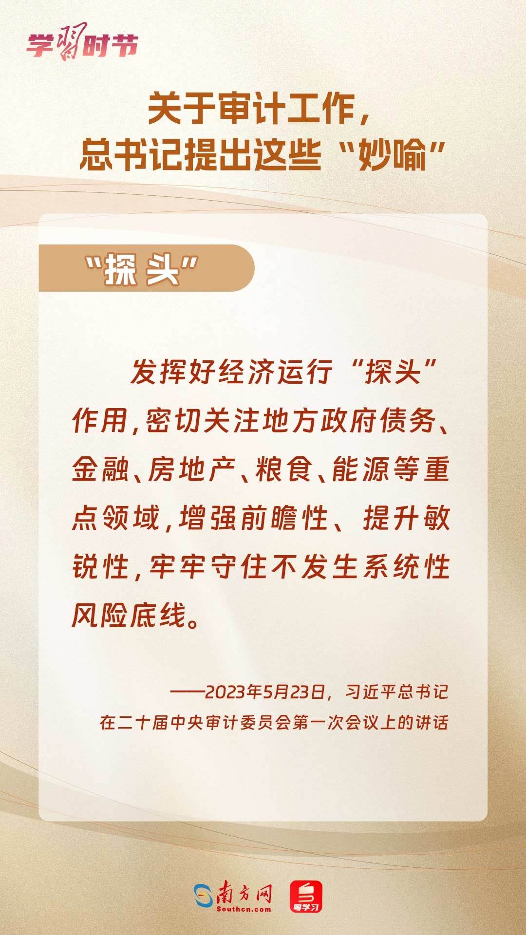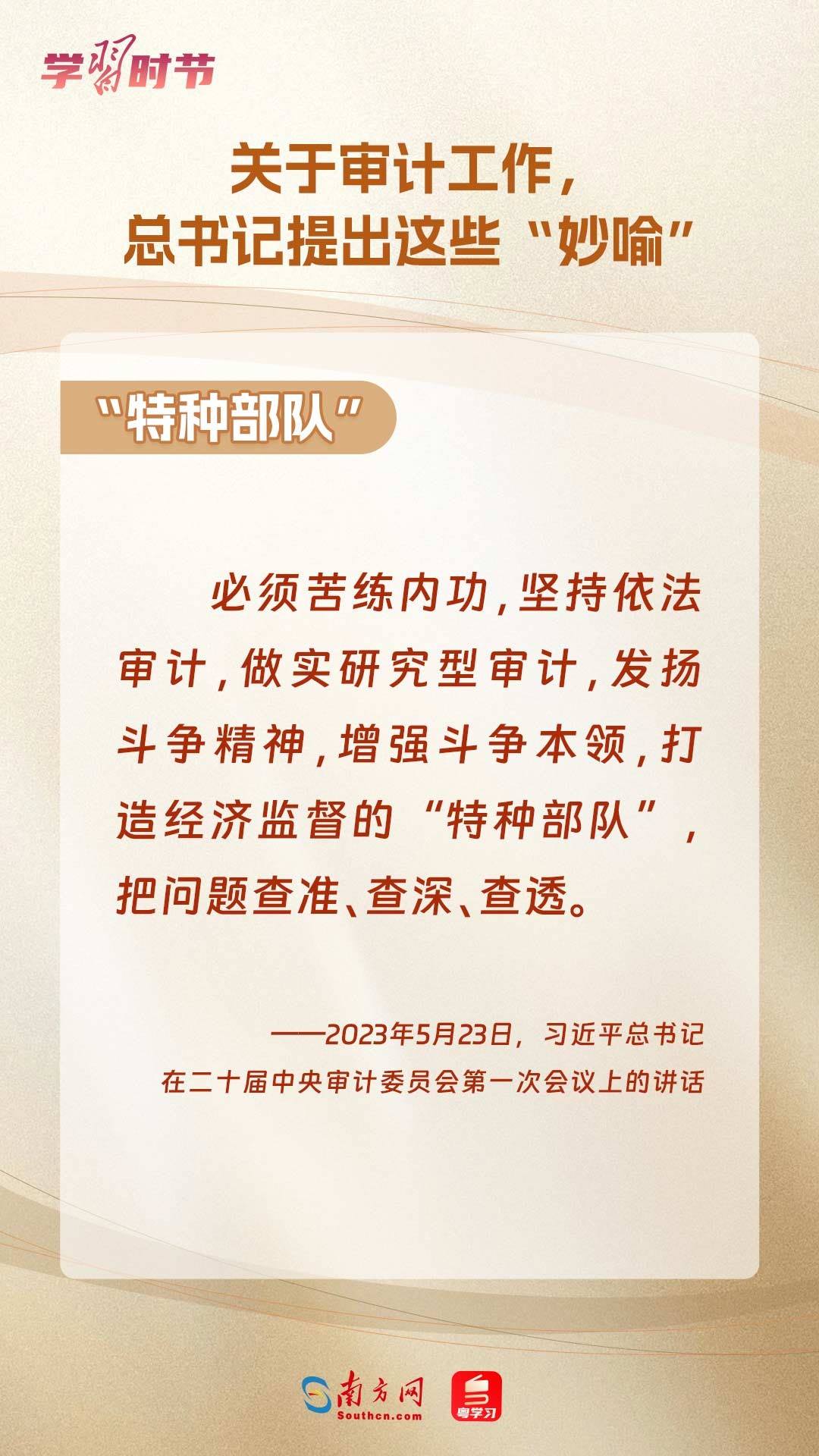 11月1日出版的《求是》雜志刊登了習(xí)近平總書(shū)記在二十屆中央審計(jì)委員會(huì)第一次會(huì)議上的講話全文。總書(shū)記在重要講話中“妙喻”審計(jì)工作,讓我們一同學(xué)習(xí)。