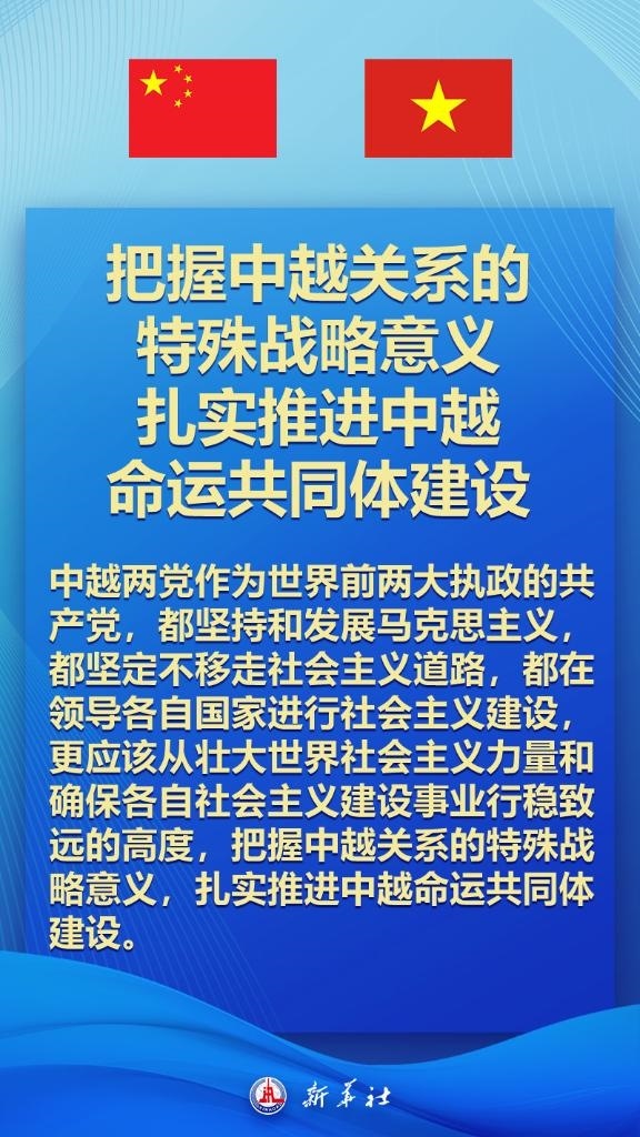 兩位總書記都認為,中越作為友好近鄰,理想相同,理念相通。作為好鄰居、好伙伴、好兄弟、好同志,中越構建具有戰(zhàn)略意義的命運共同體具有天時、地利、人和的獨特優(yōu)勢。雙方應該繼承老一輩領導人締結的傳統(tǒng)友誼,共同努力構建命運共同體,走好各自的現(xiàn)代化道路,實現(xiàn)互利共贏、美美與共,造福兩國人民,也為地區(qū)和平與繁榮作出積極貢獻。