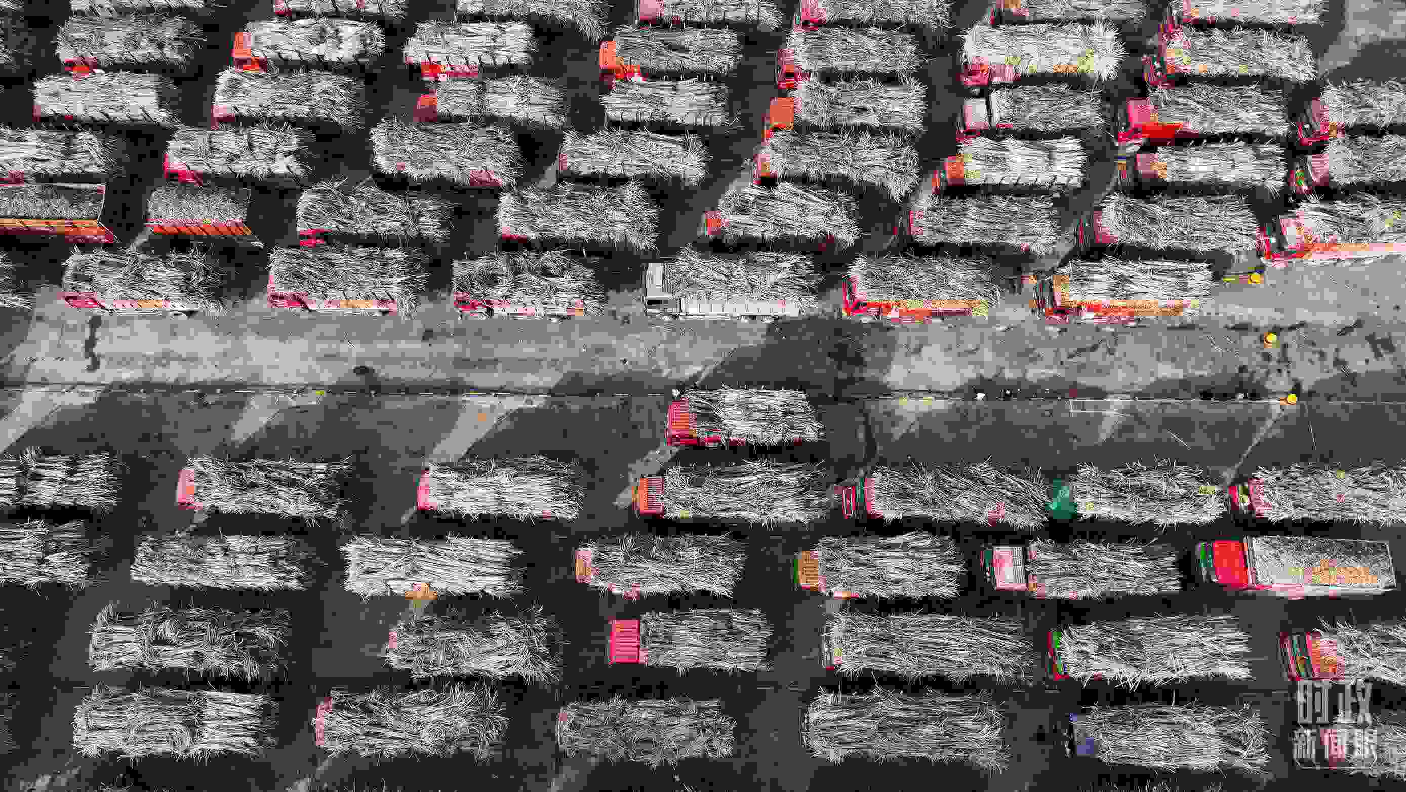 △來賓東糖鳳凰有限公司內(nèi)的甘蔗原料停放區(qū)。(總臺央視記者范凱拍攝)