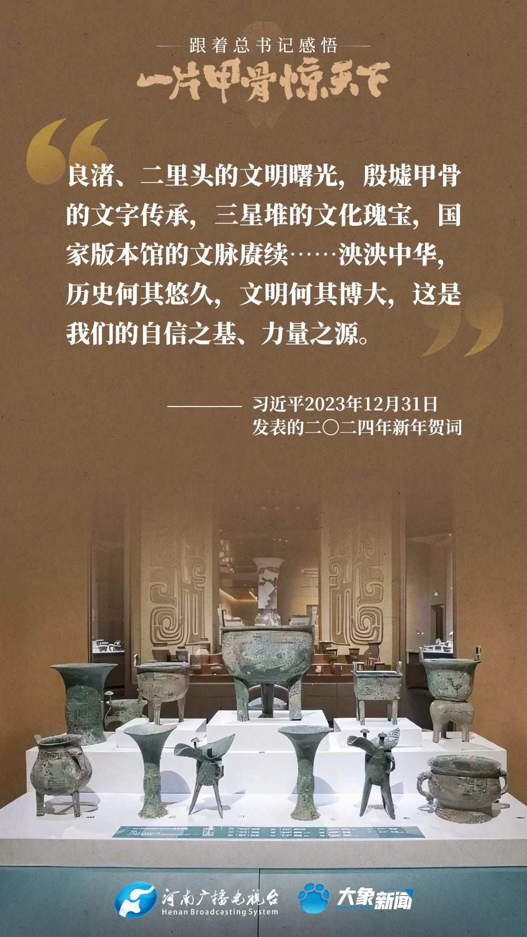 黨的十八大以來,習(xí)近平總書記多次就殷墟和甲骨文保護(hù)研究利用工作作出重要講話重要指示,為我們堅(jiān)定文化自信,傳承發(fā)展中華優(yōu)秀傳統(tǒng)文化提供了根本遵循。大象新聞邀您一起回顧、學(xué)習(xí)。