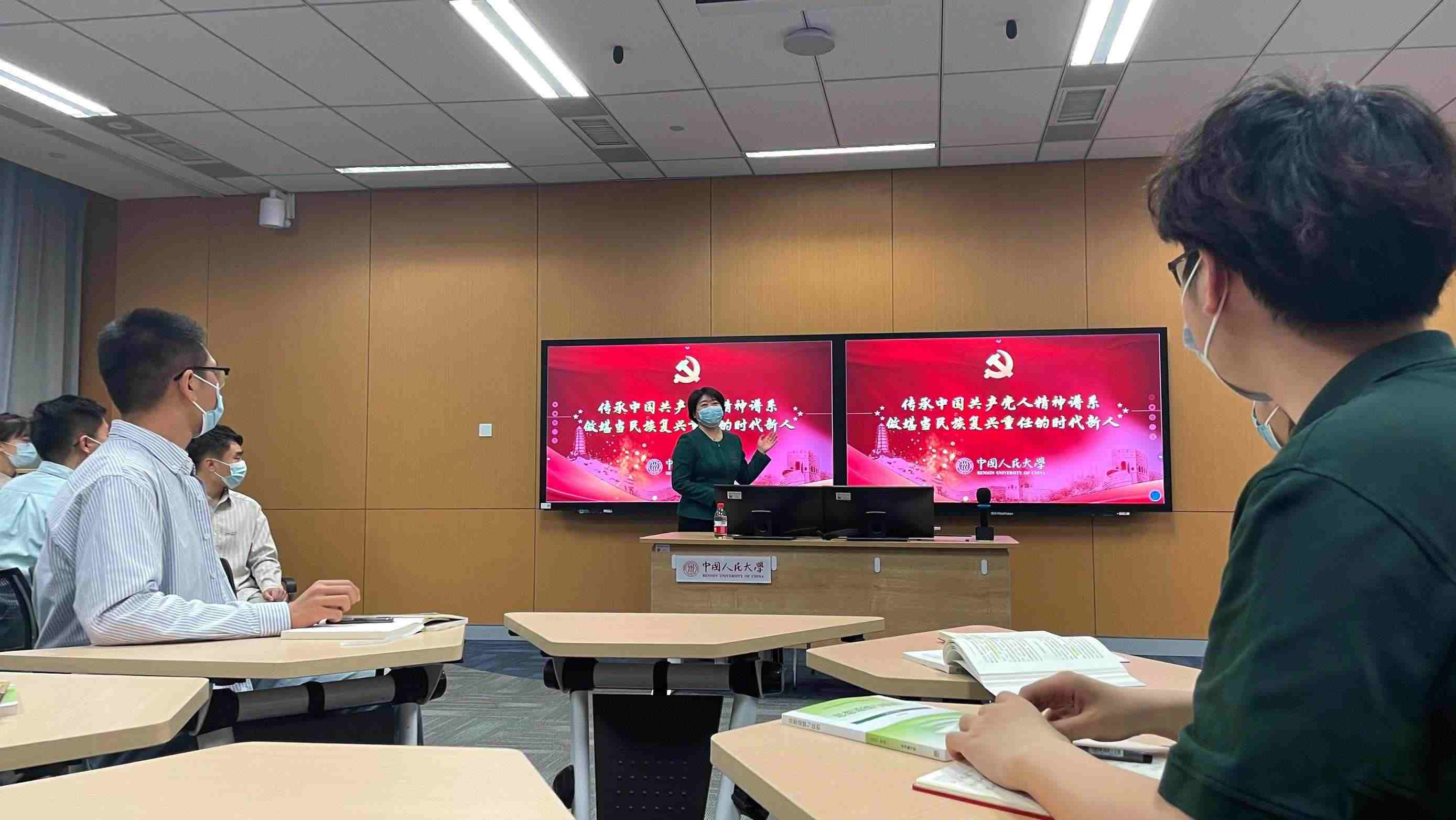 講臺前,授課教師、中國人民大學(xué)馬克思主義學(xué)院黨委書記王易正在播放視頻《陜北公學(xué)》,帶領(lǐng)同學(xué)們回顧“中國不會亡,因為有陜公”的紅色歷史,重溫人大人心中的延安精神。