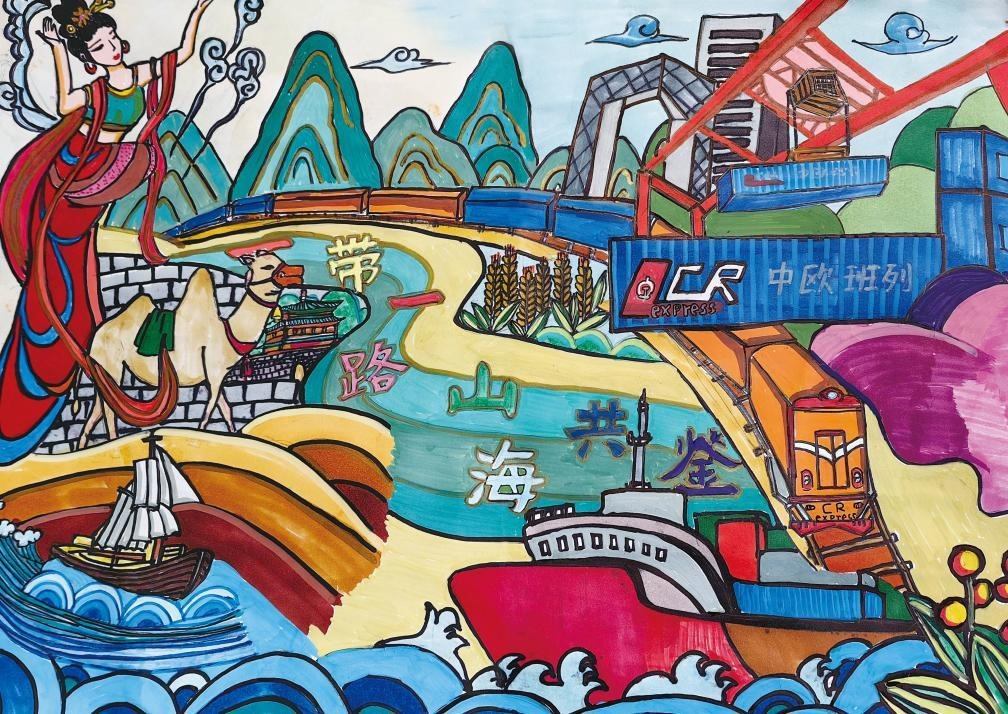 △第三屆“天宮畫展”中展出的作品《一帶一路 山海共鑒》