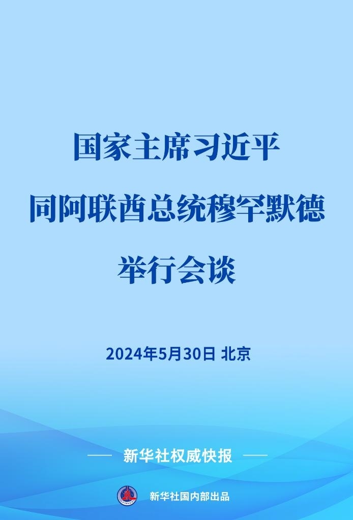 5月30日下午,國家主席習近平在北京人民大會堂同阿聯(lián)酋總統(tǒng)穆罕默德舉行會談。