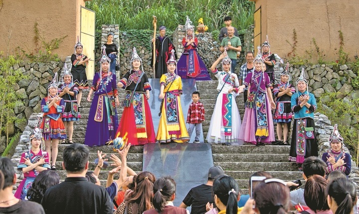 畬族歌舞、婚嫁表演等幾乎每天上演。今年56歲的葉章林,參與演出近萬場。他的嗩吶一響,全村人就知道——又有游客來啦!僅演出這項,他一年可增收2萬余元。