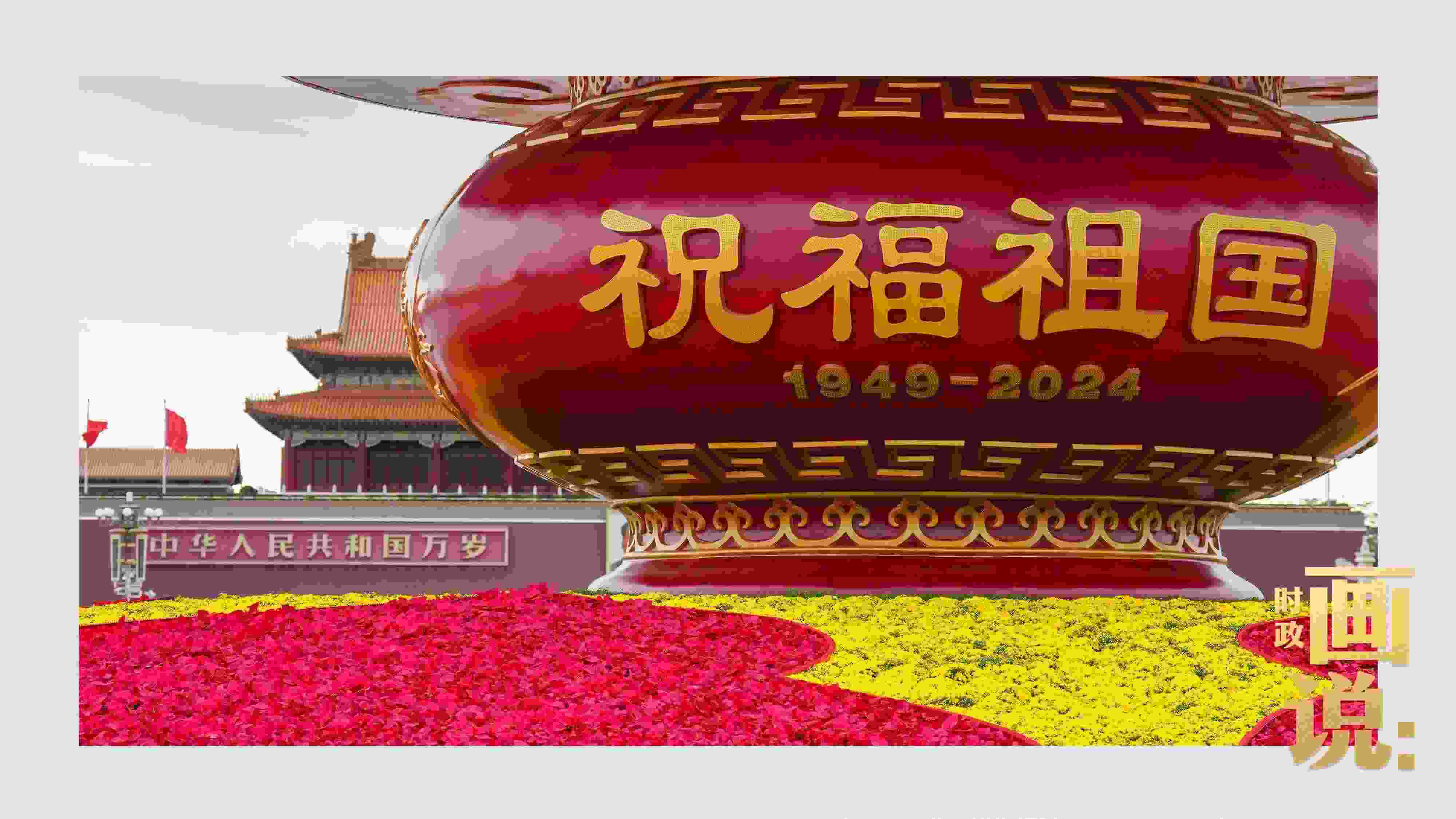 △天安門廣場中央,“祝福祖國”巨型花籃表達(dá)著對(duì)國家繁榮富強(qiáng)的美好祝福。