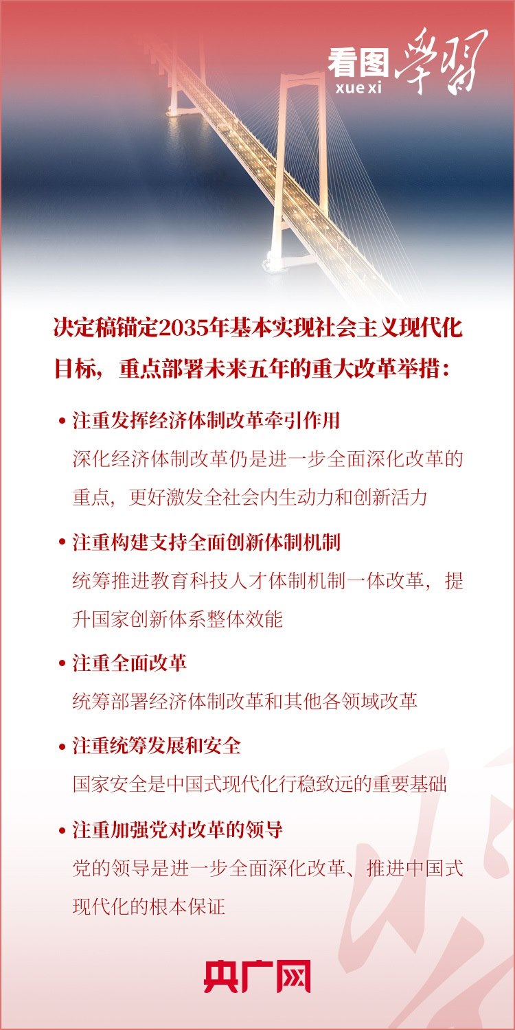 從征求和確定全會議題到起草文件、深入調(diào)查研究、廣泛征求意見、開展專題論證、反復(fù)討論修改,習(xí)近平總書記指出,決定稿錨定2035年基本實現(xiàn)社會主義現(xiàn)代化目標(biāo),重點部署未來五年的重大改革舉措?!拔鍌€注重”成為《決定》內(nèi)容擺布鮮明特點。一起來學(xué)習(xí)!