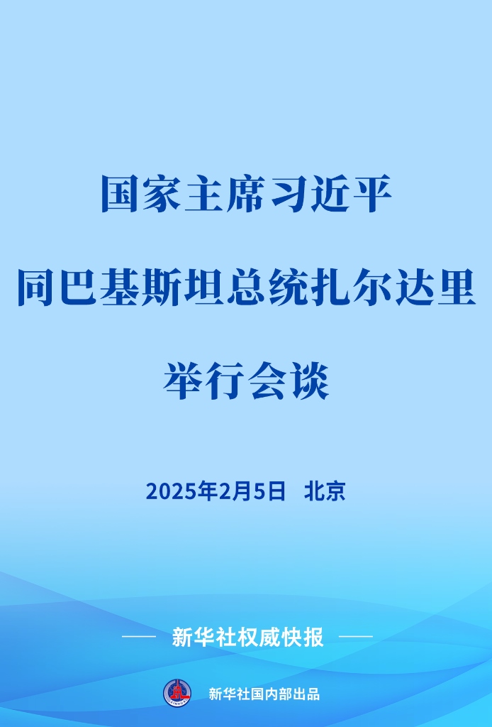 2月5日下午,國家主席習(xí)近平在北京人民大會(huì)堂同來華進(jìn)行國事訪問的巴基斯坦總統(tǒng)扎爾達(dá)里舉行會(huì)談。