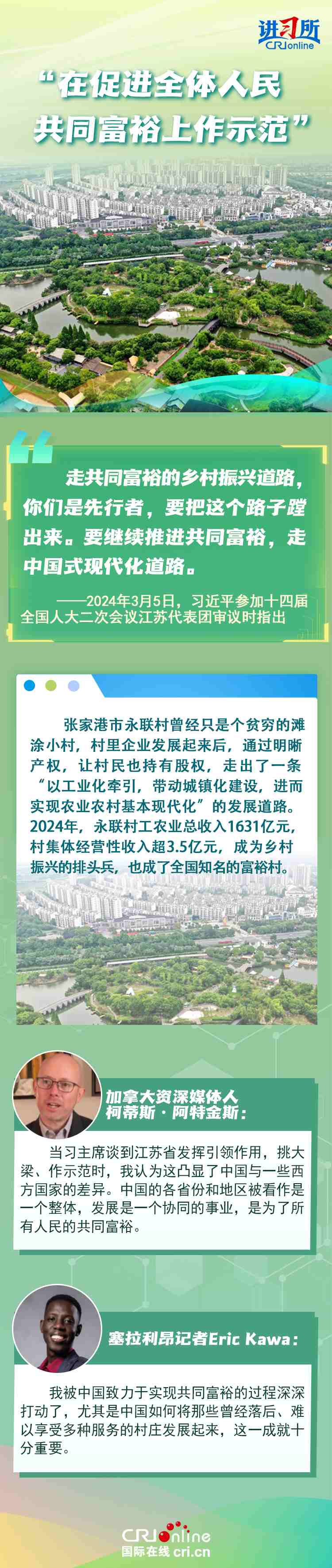 從紫金山實驗室的6G突破到蘇州工業(yè)園區(qū)的開放升級,從長三角協(xié)同創(chuàng)新到永聯(lián)村的共富實踐,江蘇在中國式現(xiàn)代化新實踐上已成為世界觀察中國高質(zhì)量發(fā)展的重要窗口。國際人士認(rèn)為,中國因地制宜的創(chuàng)新發(fā)展之路有力推動了國家現(xiàn)代化進程與民生福祉提升。