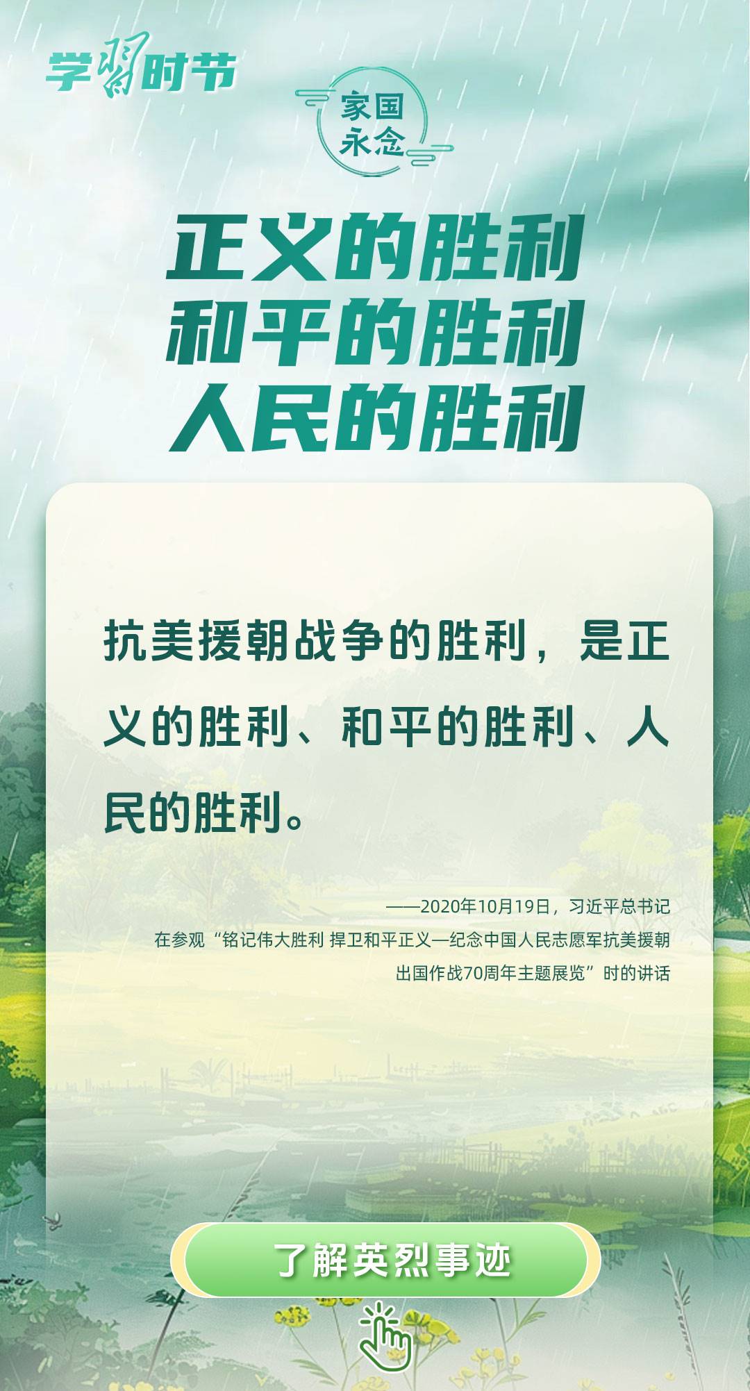 今年是中國人民抗日戰(zhàn)爭暨世界反法西斯戰(zhàn)爭勝利80周年、中國人民志愿軍抗美援朝出國作戰(zhàn)75周年。習(xí)近平總書記曾說:“對一切為國家、為民族、為和平付出寶貴生命的人們,不管時代怎樣變化,我們都要永遠(yuǎn)銘記他們的犧牲和奉獻(xiàn)?!苯裉煳覀兯鶕碛械囊磺?,無不凝結(jié)著英雄、英烈們的奉獻(xiàn)付出乃至巨大犧牲。