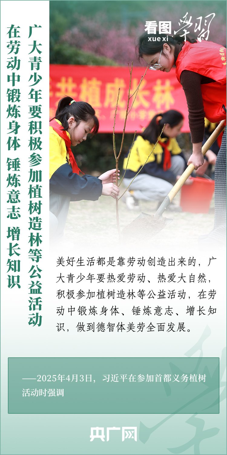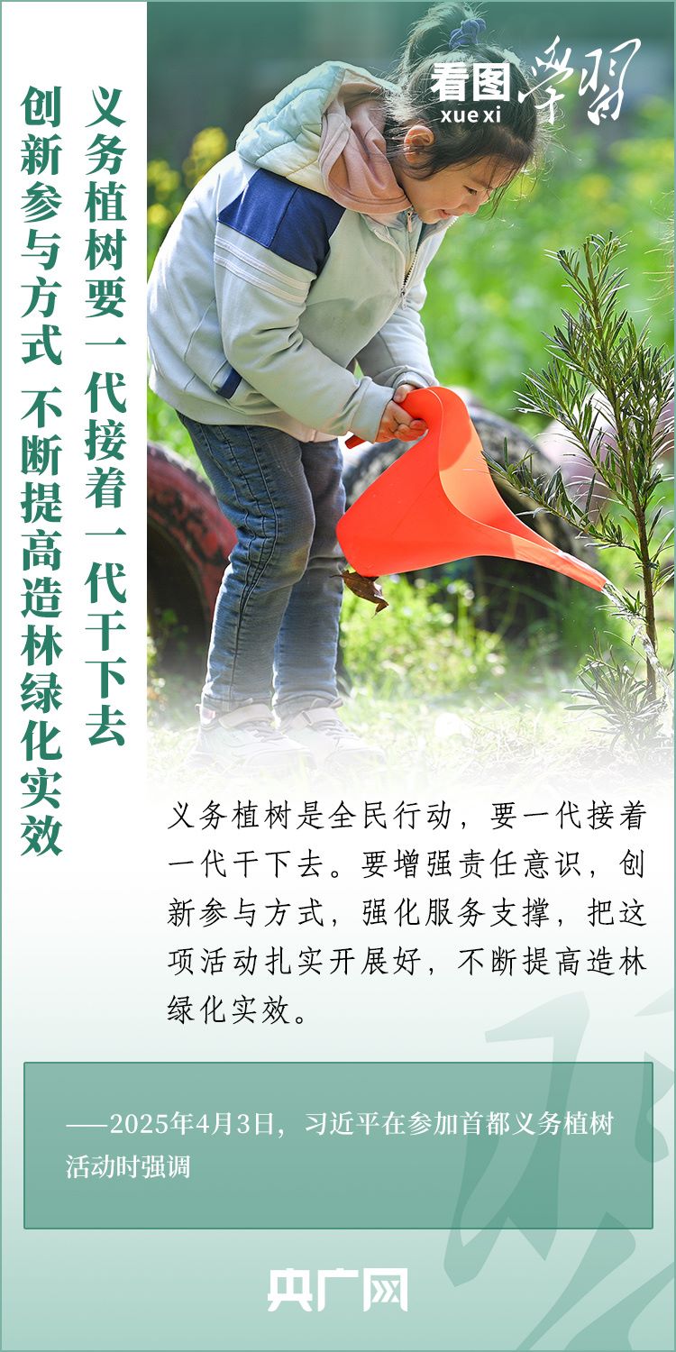 植樹造林是生態(tài)文明建設重要一環(huán)。4月3日,習近平總書記參加首都義務植樹活動。在植樹現(xiàn)場,總書記高度肯定國土綠化工作取得來之不易的成績,強調(diào)綠化祖國必須堅持“三綠”并舉、“四庫”聯(lián)動,要更加注重“提質(zhì)”“興業(yè)”“利民”,“匯聚共建美麗中國的磅礴力量,讓祖國大地更加綠意盎然、生機勃發(fā)”。一起來學習!