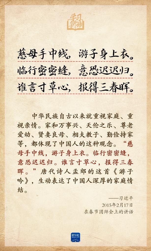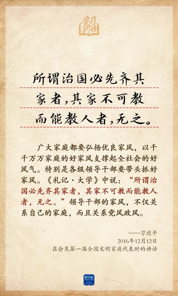 家風(fēng)是社會(huì)風(fēng)氣的重要組成部分。習(xí)近平總書記始終重視家庭、家教、家風(fēng)建設(shè),多次在重要場(chǎng)合引經(jīng)據(jù)典話家風(fēng)。5月15日是國(guó)際家庭日,我們選取總書記相關(guān)重要論述,品讀其中深意。