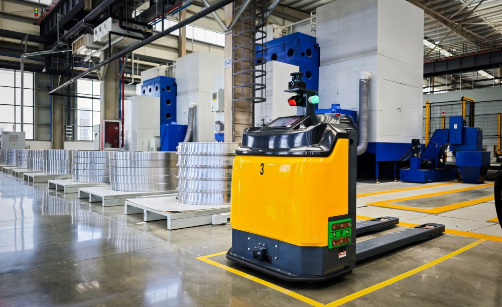 2025年5月19日在洛軸智能工廠拍攝的自動導(dǎo)向運輸車(AGV)。