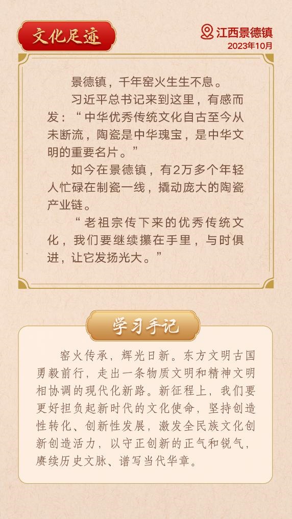 讓我們沿著習(xí)近平總書記近兩年來的文化足跡,感悟中華文明突出特性,堅定文化自信自強。