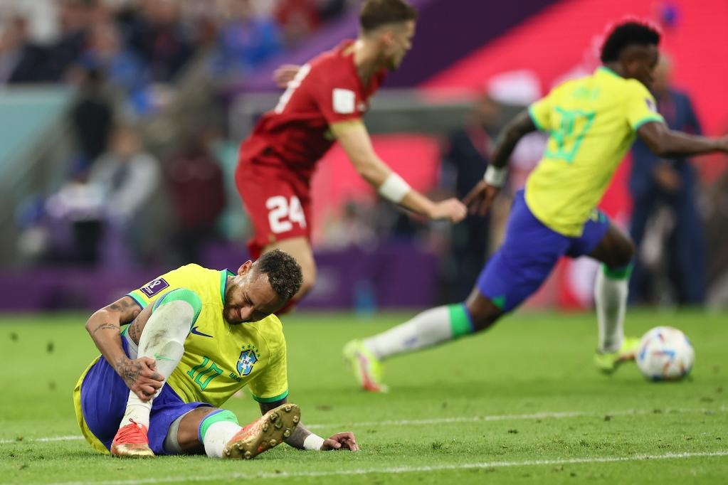 巴西隊當(dāng)天以2:0擊敗塞爾維亞隊,內(nèi)馬爾在比賽尾聲階段受傷后被換下,坐在替補席上的他以球衣掩面,在隊友的安慰下神情有些失望。