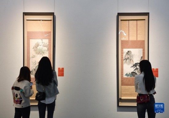 4月6日,觀眾在長(zhǎng)安畫(huà)派藝術(shù)中心觀賞美術(shù)作品。