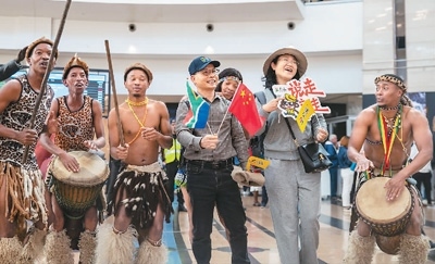 中國旅游團(tuán)抵達(dá)南非,南非旅游局在機(jī)場舉行歡迎儀式。 新華社記者 張譽(yù)東攝