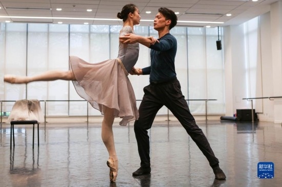 4月13日,上海芭蕾舞團(tuán)副團(tuán)長、首席主要演員吳虎生和主要演員戚冰雪在排練芭蕾舞劇《歌劇魅影》。