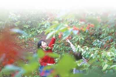 游客在體驗采摘櫻桃。厙東關(guān)鄉(xiāng)政府提供