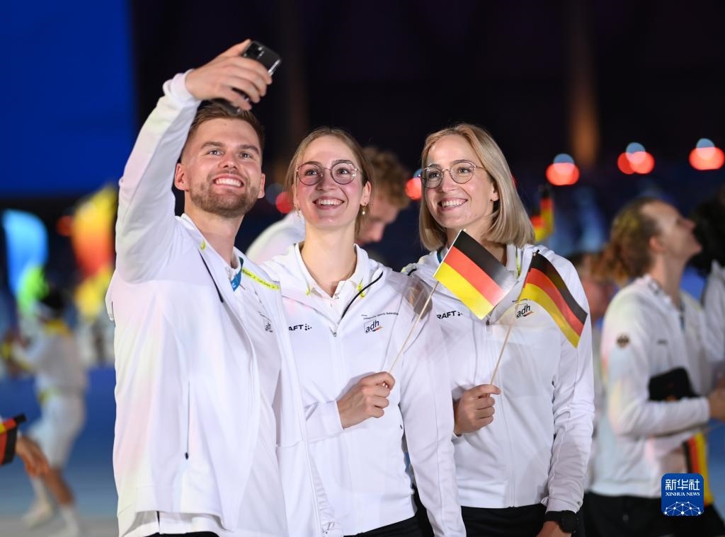 7月28日,德國大學(xué)生體育代表團(tuán)在開幕式上入場。