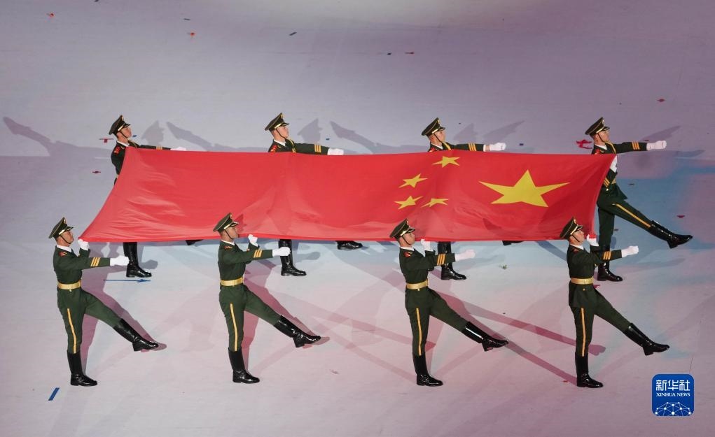 這是7月28日拍攝的開幕式上的升旗儀式。