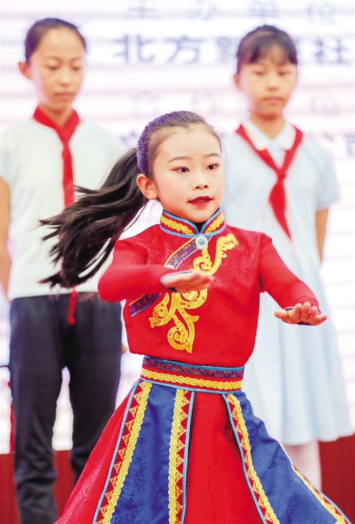 同樣來自騰飛路小學(xué)三年級5班的寧悅彤壓軸出場,在舞臺上激情四射的啦啦操表演獲得了很高的分?jǐn)?shù)。就在前一天,她和她的小伙伴們代表學(xué)校參加呼和浩特市第六屆中小學(xué)啦啦操健美操大賽,捧回了團(tuán)體第一的驕人成績。寧悅彤在后臺接受記者采訪時(shí)說:“第一次站上這樣大的舞臺表演,起初有點(diǎn)緊張,有幾個(gè)動(dòng)作在表演過程中需要身體接觸地面,會很疼,但這是必須要承受的。我覺得這次經(jīng)歷也讓我更加勇敢,更加自信了。”