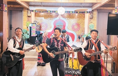 在云南省瀾滄拉祜族自治縣,拉祜族房東扎努的民宿在國慶節(jié)假期迎來滿房。今年4月,扎努改造自家老房子,把民族音樂與民宿相結合,開了一家音樂民宿——拉祜音宿?!袄镒迨悄芨枭莆璧拿褡?。我喜歡與人交流,喜歡鄉(xiāng)村風光和家鄉(xiāng)氣候,所以選擇回鄉(xiāng)開民宿?!弊鳛榉繓|,扎努常常帶游客一起唱歌跳舞,表演他創(chuàng)作的《我在瀾滄等你》《快樂拉祜》等歌曲,并向他們介紹拉祜族的民族歷史和文化。