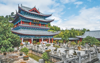 “一座土司府,半部民族史”。木府萬(wàn)卷樓前的這10個(gè)字,將邊地古城各民族交往交流交融的故事娓娓道來(lái)。獅子山拱衛(wèi)、護(hù)城河縈繞,木府的選址與布局十分講究。作為麗江木氏土司府的衙署,木府始建于明代,后來(lái)歷經(jīng)多次擴(kuò)建和修繕,形成了現(xiàn)有的建筑群布局,議事廳、萬(wàn)卷樓、護(hù)法殿等沿中軸線依次排開。歷經(jīng)400多年風(fēng)雨的木府,作為麗江古城中的重要文化地標(biāo),聆聽(tīng)著各民族百川匯流向前的歷史回響。