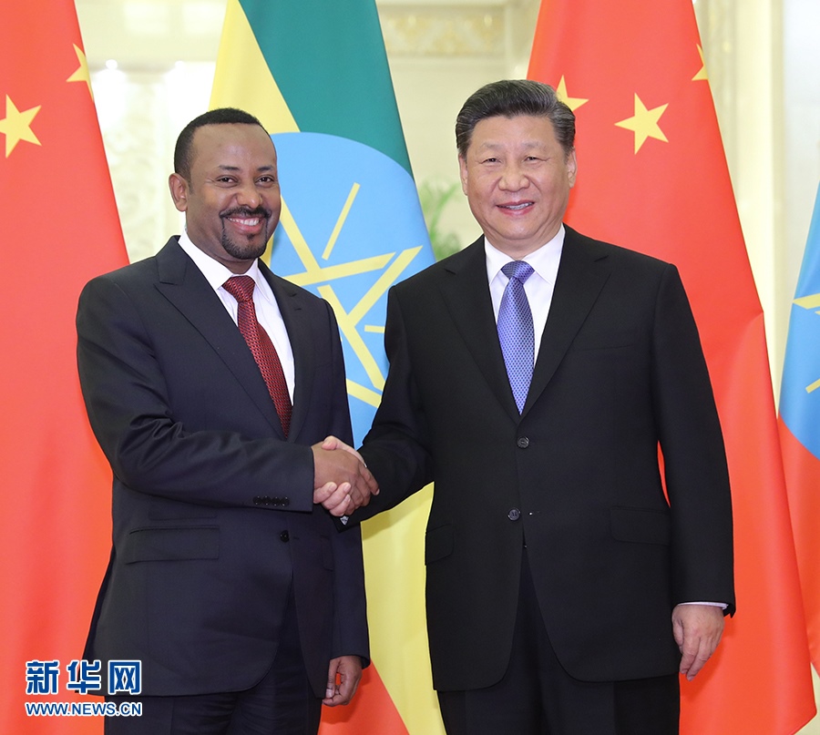 4月24日,國家主席習(xí)近平在北京人民大會(huì)堂會(huì)見埃塞俄比亞總理阿比。 新華社記者 丁林 攝