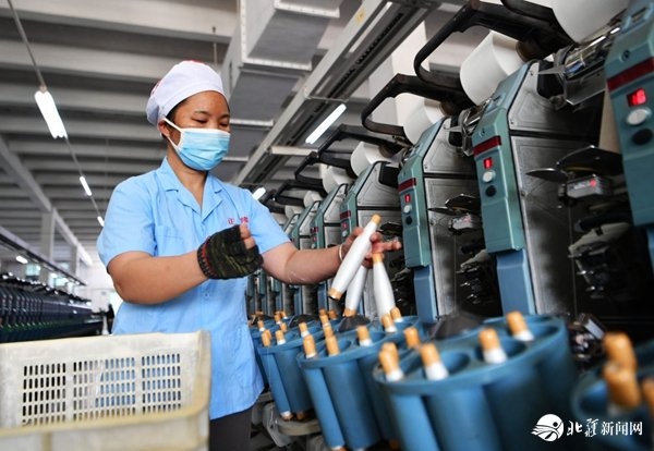 2月18日,已返崗的工人戴著口罩在福建省福州市長(zhǎng)樂區(qū)正隆紡織有限公司紡織車間里工作。新華社記者 魏培全 攝