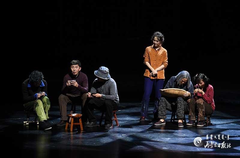 參演《紅手印》的都是來自草原的蒙古族演員,不僅要完成漢語的臺(tái)詞,還要熟練自然地講出大量?jī)?nèi)蒙古西部方言對(duì)白?!皩?duì)于話劇演員來說,臺(tái)詞功底太重要了。為了練好方言,我們好多演員早起練功的時(shí)候嘴里都念念有詞地說著西部方言?!毖輪T烏仁朝魯門說。他扮演的新扎木村主任令人印象深刻,一個(gè)一心想帶百姓致富卻屢遭失敗的老黨員形象。“之前表演歷史題材的話劇大多是從影像和資料了解人物,這部戲的題材貼近觀眾們的現(xiàn)實(shí)生活,必須接地氣才能得到認(rèn)可。我通過寫人物小傳的方式,深挖村主任的人物個(gè)性和從失望到燃起希望的內(nèi)心世界,讓觀眾能夠認(rèn)可這個(gè)形象。”烏仁朝魯門說。