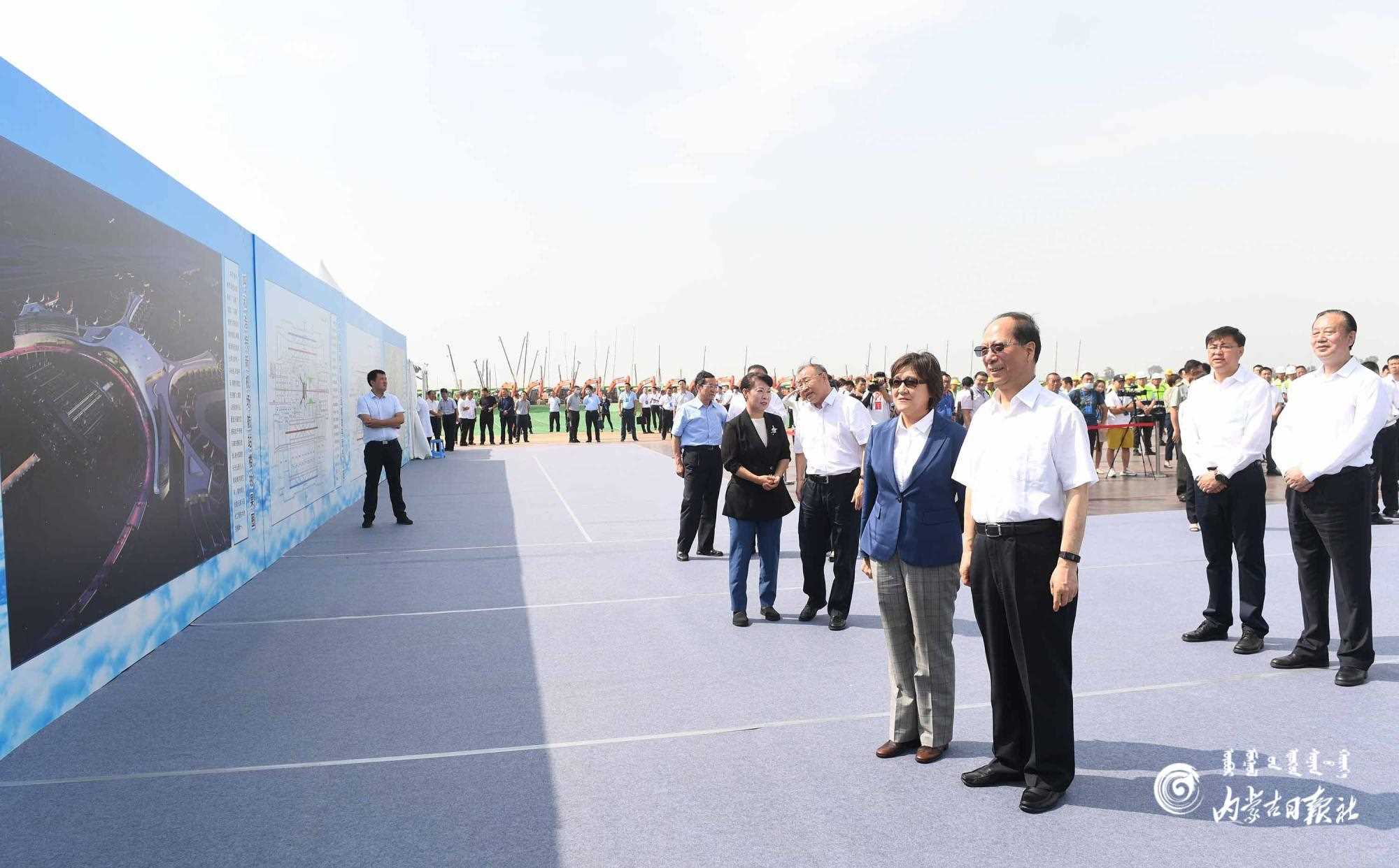 7月30日上午,自治區(qū)黨委書記、人大常委會(huì)主任石泰峰,自治區(qū)黨委副書記、自治區(qū)主席布小林出席呼和浩特新機(jī)場建設(shè)動(dòng)員會(huì)前,觀看新機(jī)場規(guī)劃圖版了解項(xiàng)目整體情況。內(nèi)蒙古日?qǐng)?bào)社融媒體記者 袁永紅 攝