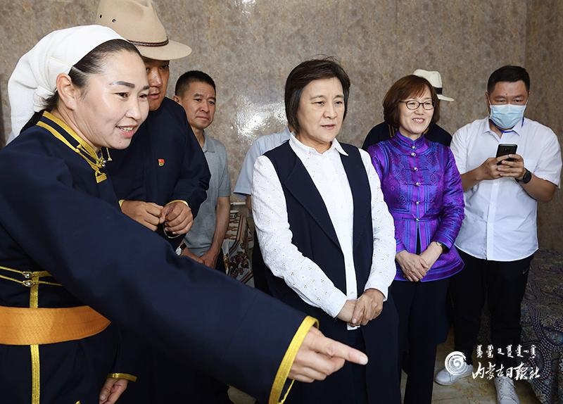 自治區(qū)黨委副書(shū)記、自治區(qū)主席布小林來(lái)到呼倫貝爾市新巴爾虎右旗芒來(lái)嘎查牧戶滿達(dá)家,了解智慧牧場(chǎng)等設(shè)備使用情況。內(nèi)蒙古日?qǐng)?bào)記者 金泉 攝