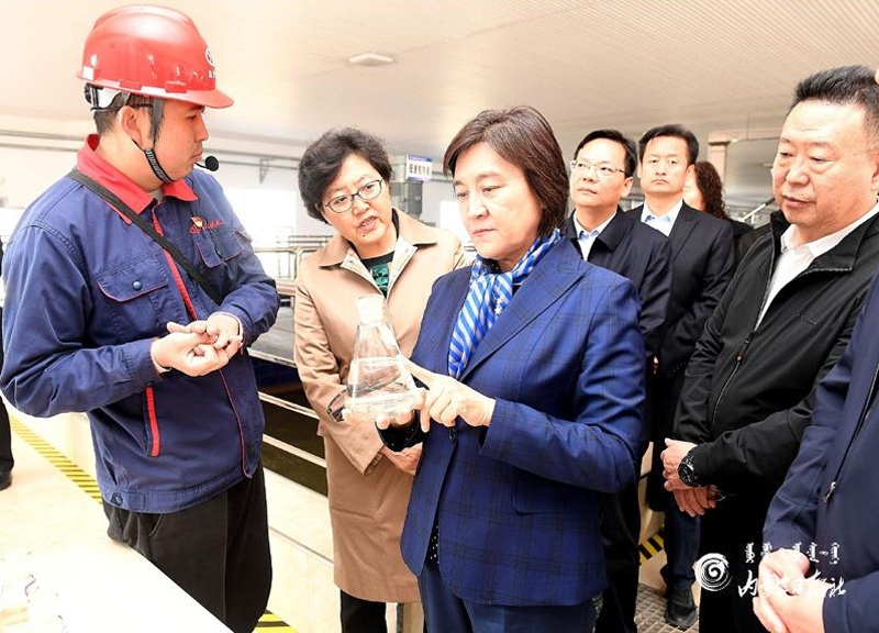 布小林十分關(guān)心沿黃地區(qū)的水資源節(jié)約集約高效利用和生態(tài)保護建設(shè)。她來到烏海市綠色生態(tài)農(nóng)業(yè)產(chǎn)業(yè)園,走進綠農(nóng)永勝農(nóng)民專業(yè)合作社陽光大棚葡萄基地,詳細了解葡萄種植需水和高效節(jié)水設(shè)施的使用情況;在烏海市啟源供水有限公司,實地查看凈水工藝流程及針對黃河水特點采取的處理措施。布小林指出,我區(qū)沿黃地區(qū)大多水資源匱乏,生態(tài)保護和經(jīng)濟社會發(fā)展面臨水資源短缺的剛性約束。抓好水資源節(jié)約集約高效利用,是推進黃河流域生態(tài)保護和高質(zhì)量發(fā)展的重中之重。要牢固樹立節(jié)水意識,堅持以水定城、以水定地、以水定人、以水定產(chǎn),合理規(guī)劃人口、城市和產(chǎn)業(yè)發(fā)展,大力發(fā)展節(jié)水產(chǎn)業(yè)和技術(shù),實施全社會節(jié)水行動,推動用水方式由粗放向節(jié)約集約轉(zhuǎn)變。要大力發(fā)展循環(huán)經(jīng)濟,結(jié)合技術(shù)改造和產(chǎn)品更新?lián)Q代,組織實施重大節(jié)水和水循環(huán)利用示范工程,提高水資源重復利用率。