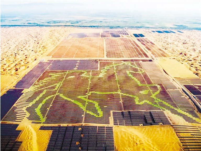 駿馬奔騰似潮涌,一日千里獨行空。庫布其沙漠腹地,由196320塊藍(lán)色光伏板組成的駿馬圖栩栩如生,格外吸睛。內(nèi)蒙古現(xiàn)代能源經(jīng)濟,一如這昂首奔騰的駿馬,向著“雙碳”目標(biāo)奮蹄疾馳。(記者 許曉嵐 康麗娜)