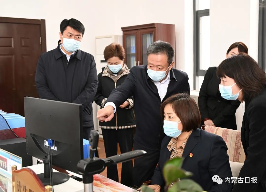 4月21日,孫紹騁在鄂爾多斯市東勝區(qū)天驕街道鐵西社區(qū)了解基層需要維護(hù)的系統(tǒng)平臺情況。內(nèi)蒙古日報社融媒體記者馬建荃攝