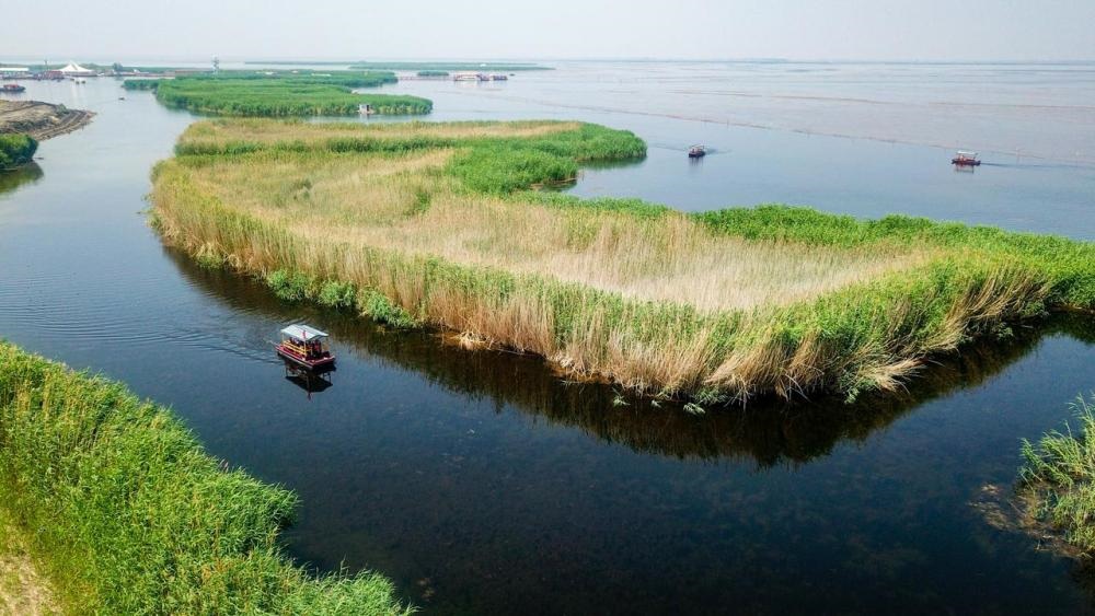 這是6月19日拍攝的巴彥淖爾市烏拉特前旗境內(nèi)的烏梁素海(無人機照片)。新華社記者彭源攝