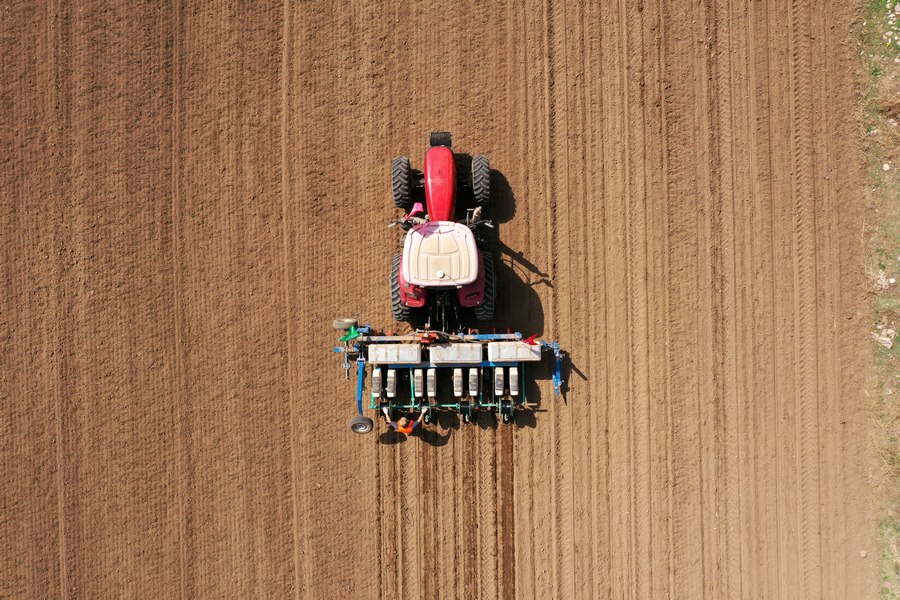 空中俯瞰自動(dòng)導(dǎo)航無人駕駛農(nóng)機(jī)具 北疆新聞?dòng)浾?張楊攝影