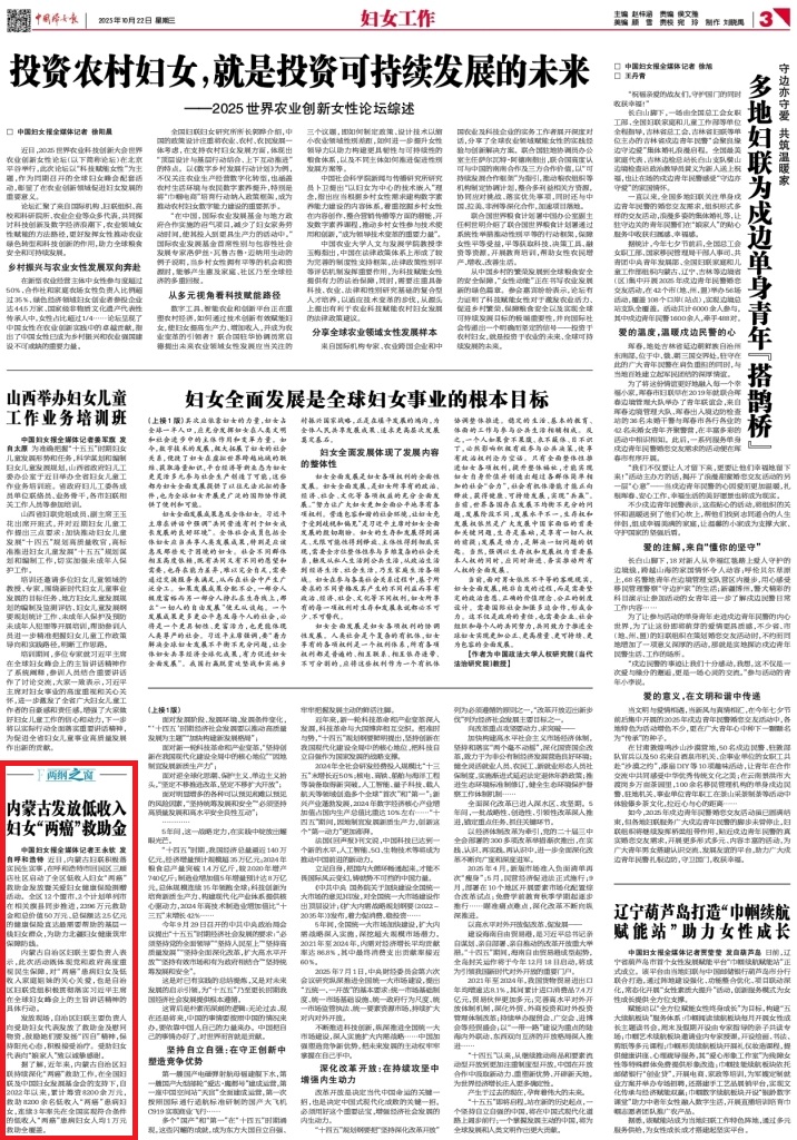 2025年10月22日,《中國婦女報》第3版刊發(fā)題為《內蒙古發(fā)放低收入婦女“兩癌”救助金》的文章,報道了近日,內蒙古自治區(qū)婦聯(lián)在呼和浩特市回民區(qū)三順店社區(qū)啟動全區(qū)低收入婦女“兩癌”救助金發(fā)放暨關愛婦女健康保險捐贈活動,全區(qū)12個盟市、2個計劃單列市在相關旗縣同步推進。