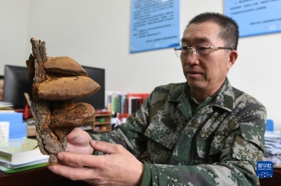 2月20日,在內(nèi)蒙古賀蘭山國(guó)家級(jí)自然保護(hù)區(qū)管理局,工作人員徐建國(guó)展示植物標(biāo)本。
